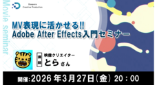 モーショングラフィックスで魅せるMV制作Adobe AfterEffects入門セミナー 映像クリエイター とら氏登壇3月27日(金)20時より 参加者募集