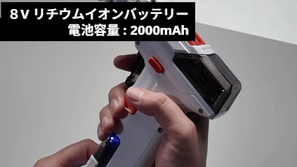5.ロングライフ・バッテリー: 2000mAhの大容量セルを搭載し、長時間の作業をサポート。